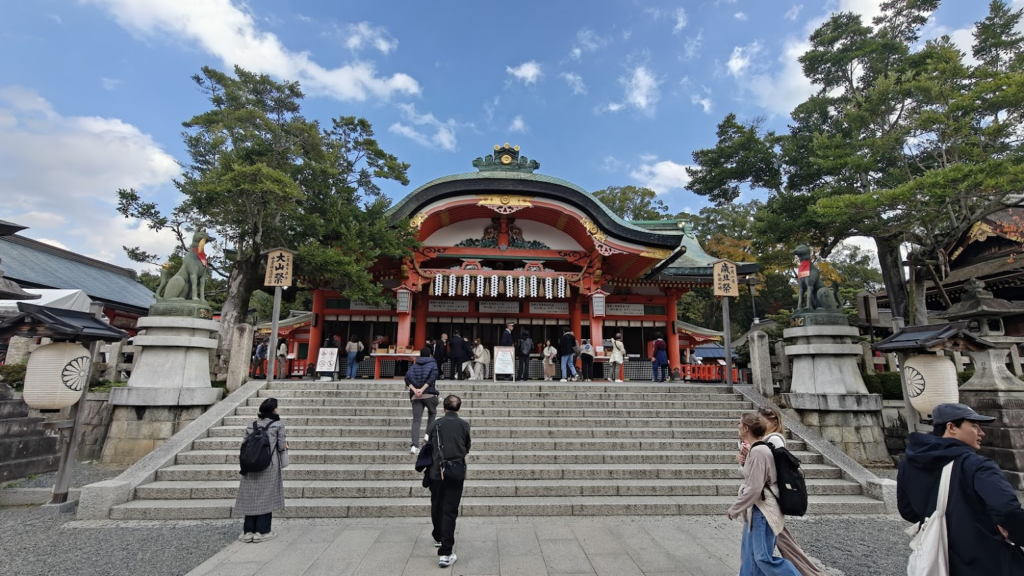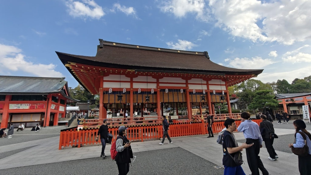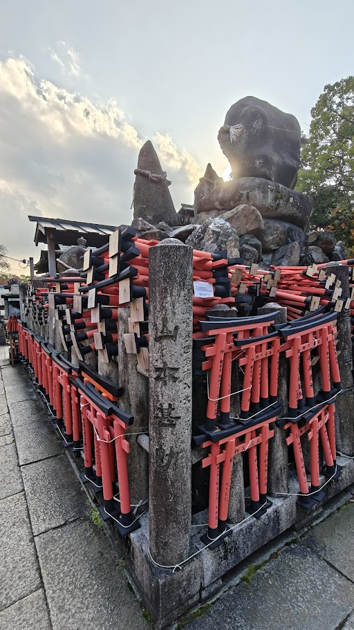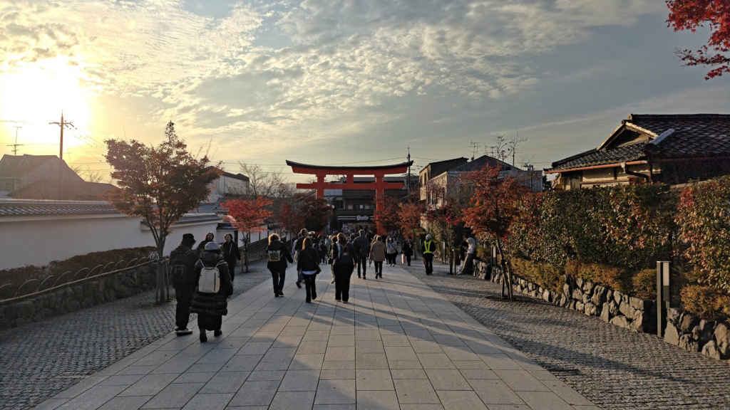 Je vise un lieu un peu particulier. Il s’agit du Fushimi Inari-taisha qui est le sanctuaire principal de la déesse (kami) Inari. L’entrée du dit sanctuaire est orné d’un torri, portail traditionnel japonais, communément érigé à l’entrée d’un sanctuaire shintoïste, afin de séparer l’enceinte sacrée de l’environnement profane. Il est aussi considéré comme un symbole du shintoïsme.