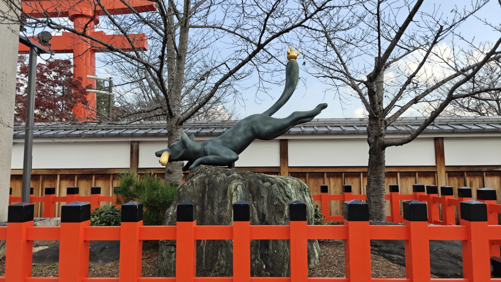 On retrouve de belles statues de renards appelés Kitsune en Japonais.