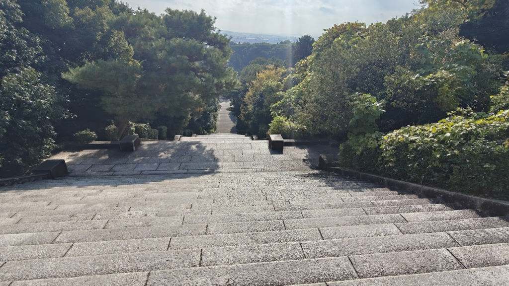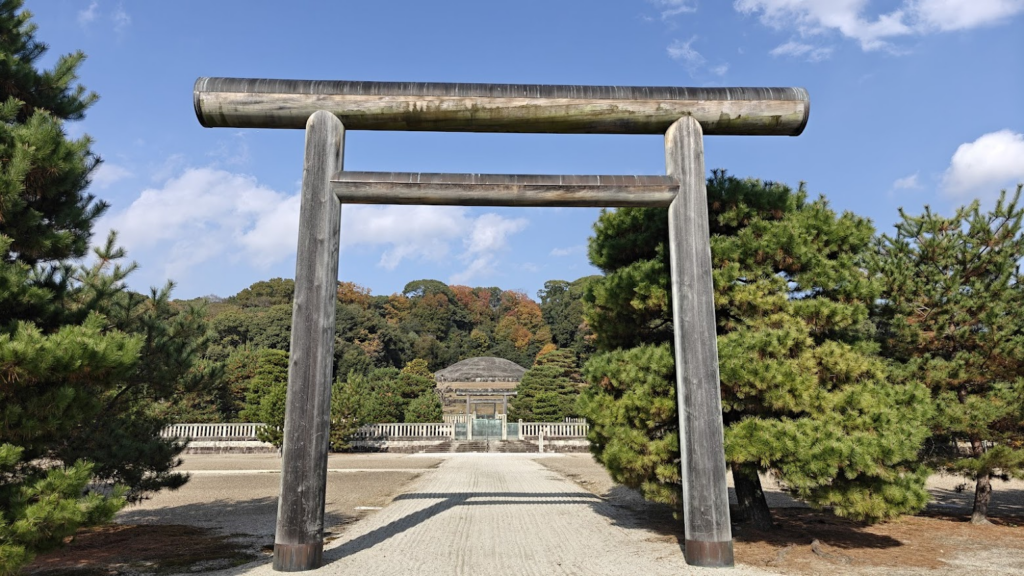 La forêt dense qui entoure aujourd’hui la tombe a été plantée au moment de la construction pour créer un sanctuaire naturel permanent, isolant le repos de l’empereur du reste de la ville de Fushimi.
