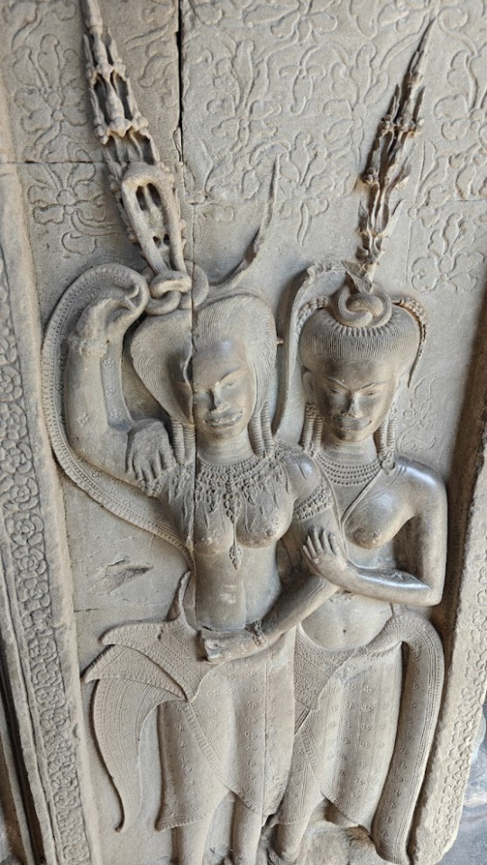 Fun fact, la grande fierté teinté d’un peu de revanchardise des khmer est de montrer comment Louis Vuitton aurait plagié les décorations murales des robes des statues ou plutôt de gravures murales. personne ne pourra confirmer ou infirmer cette information. Mais qui sait…
