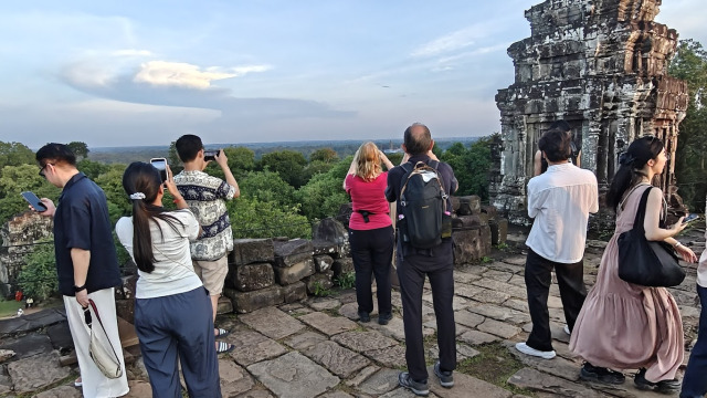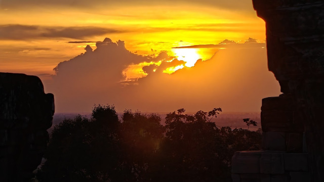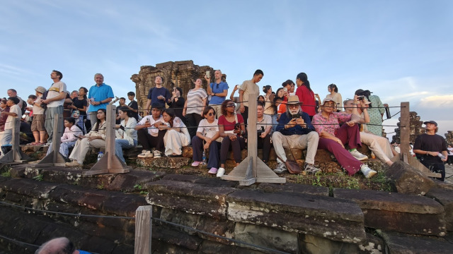 On termine notre périple sur le dernier temple, Phnom Bakheng pour un coucher de soleil. Nous n’étions pas les seuls.