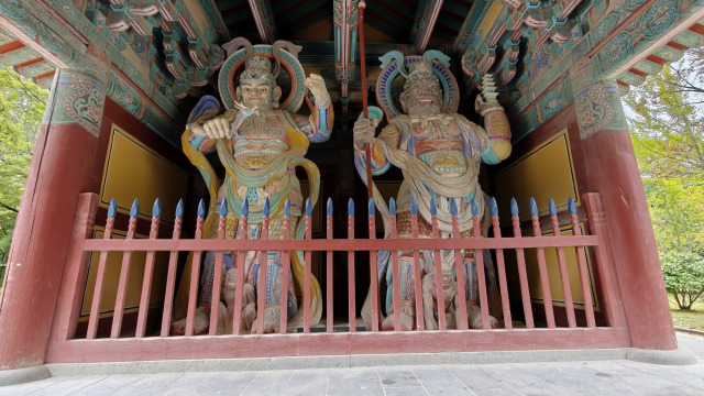 Après avoir passé la porte, on chemine en passant par un passage entre 4 statues qui rappellent à quel point il faut être humble.