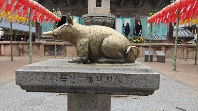 On y trouve aussi un cochon qui, si on lui touche les fesses, apporte la bonne fortune.