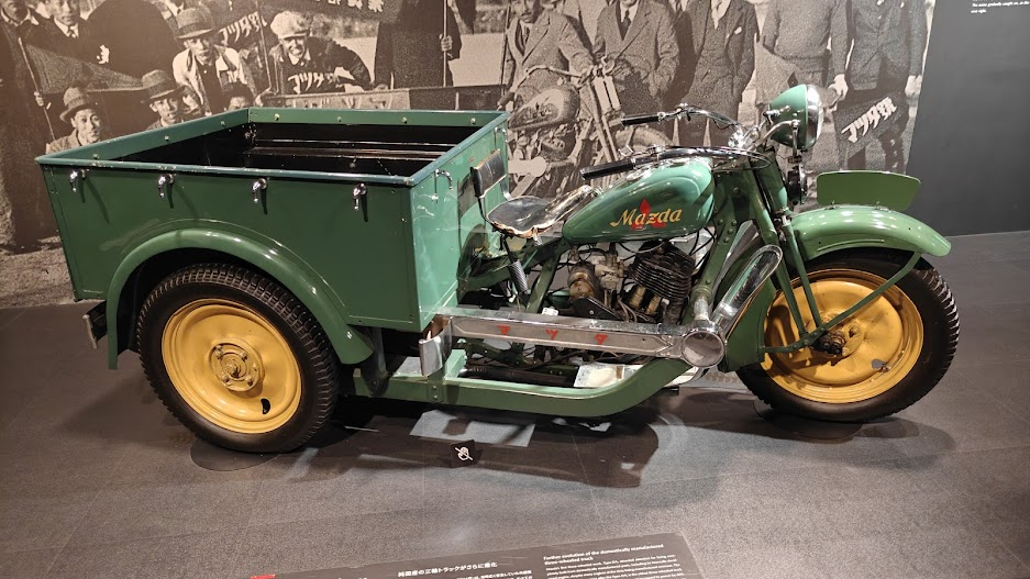 Nous commençons la visite avec une vidéo de présentation à la gloire de Mazda. Puis nous commençons à rentrer dans le vif du sujet avec le premier véhicule créé par Mazda (avec un moteur Mitsubishi)