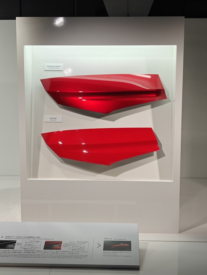 Pour sublimer ce travail sur les reflets, Mazda a développé des peintures spéciales, comme le célèbre « Soul Red Crystal ». Cette couleur utilise plusieurs couches pour créer un contraste profond entre les zones éclairées (très brillantes) et les zones d’ombre, accentuant ainsi les courbes sculptées par les Takumi.