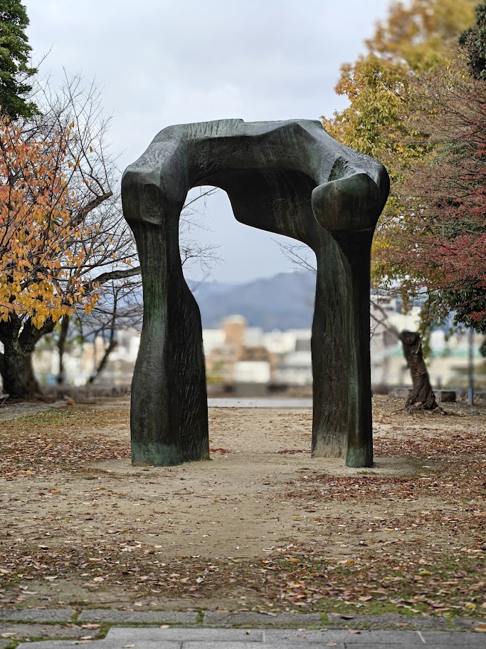 Bon pour être un peu honnête, je me suis un peu foiré sur le plan et les horaires. Ma première halte se fait au Musée d’Art contemporain de la ville d’Hiroshima. Le premier construit au japon en 1989. J’aurais dû vérifier l’horaire, cela m’aurait évité de poireauté une heure, au froid, dehors.
