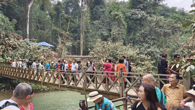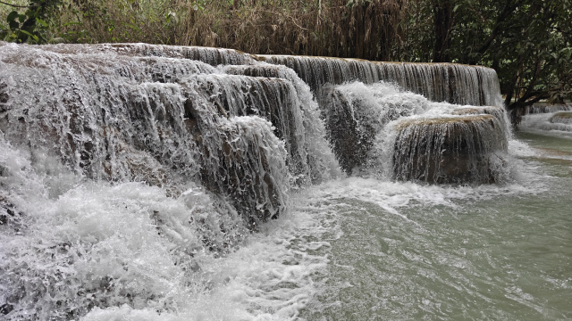 Allez, cette fois ci c’est la bonne, je prends la route, direction Kuang Si et ses célèbres cascades. 60 mètres de chutes d’eau sur plusieurs niveaux successifs arrivant dans un grand bassin naturel. Célèbre pour sa couleur bleue turquoise dû à la très forte teneur en calcaire.