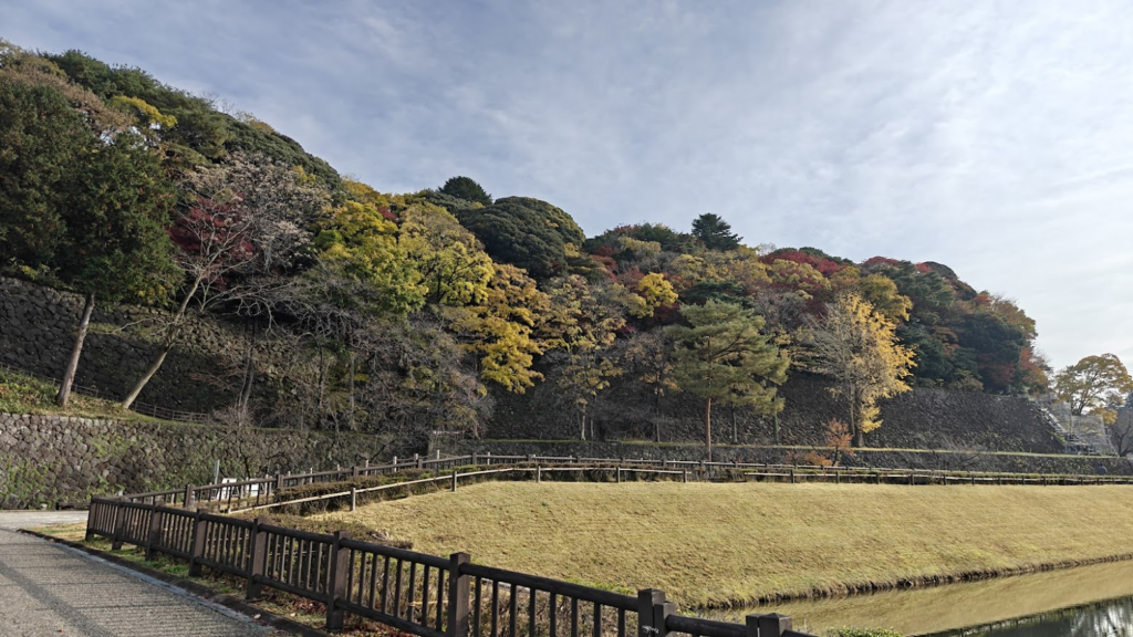 Je commence mon périple par le Parc du chateau créant une forme de mont au milieu de la ville. C’est l’automne, et je profite des belles couleurs du feuillage .