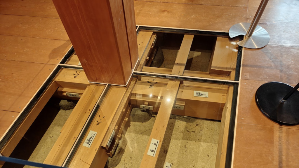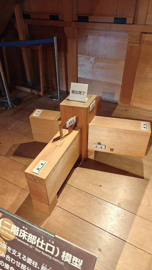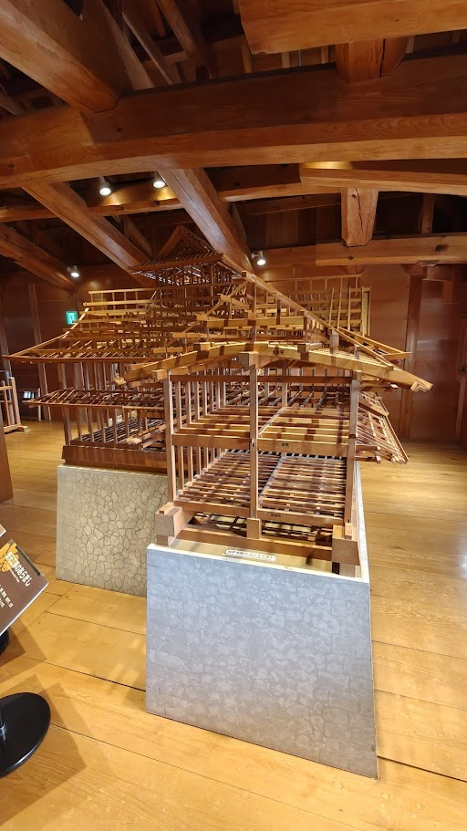 La visite du bâtiment principale se fait assez vite et est, je dois bien reconnaitre d’un intérêt assez limité. Néanmoins, j’ai pu apprécier la construction traditionnelle Japonaise appelée « Kigumi » qui consiste en un assemblage de bois ne faisant appel à aucun clou ni vis.