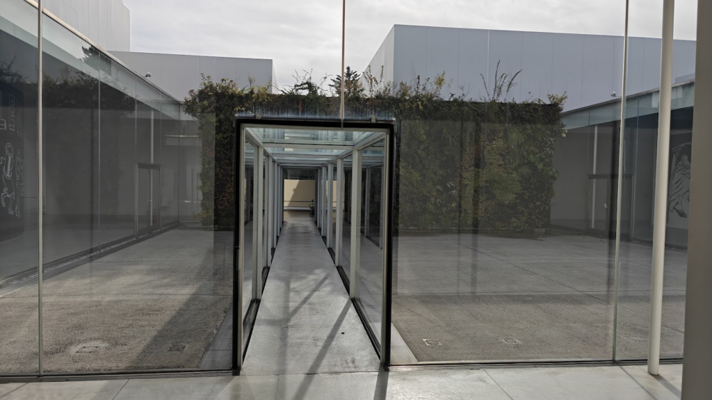 Comme souvent, il y a des oeuvres autour du bâtiment pour égayer un espace très épuré et minimaliste.
