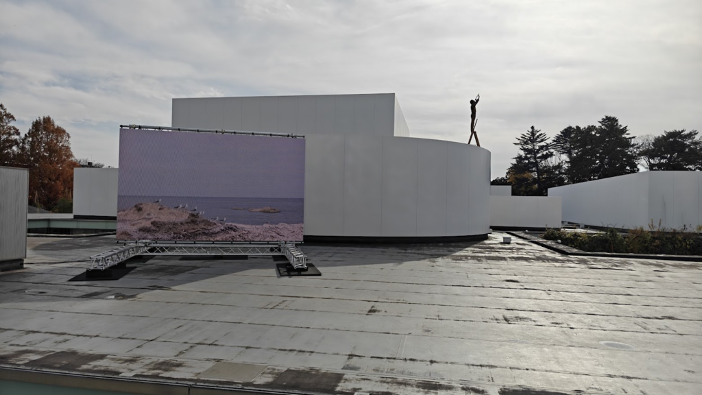 Le bâtiment a une forme circulaire, avec un diamètre de 112,5 mètres. D’après Wikipédia, Cette forme a pour objectif de maintenir l’apparence de faible volume de l’ensemble du bâtiment, pour atténuer l’ampleur du projet et permet l’accès à partir de plusieurs points d’entrée. La transparence du bâtiment manifeste encore le désir d’éviter au musée d’être perçu comme une grande masse introvertie. D’après moi, j’ai mis 5 minutes à trouver l’entrée. N’est pas Japonais qui veut.
