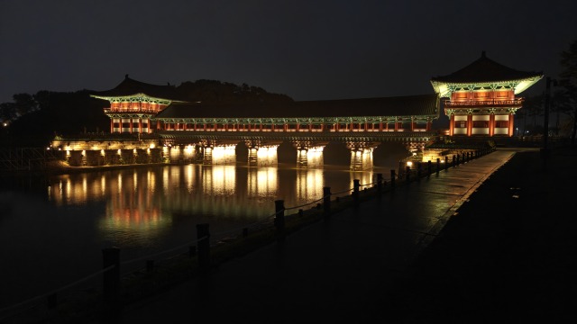 Juste à côté du village se trouve le Pont Woljeonggyo, construit sous l’ère Silla. Il fut détruit sous l’ère Joseon puis reconstruit pendant 10 ans entre 2008 et 2018. Il est fait principalement de pierres pour les piliers dans l’eau et de bois pour tout le reste de la construction.