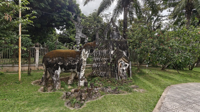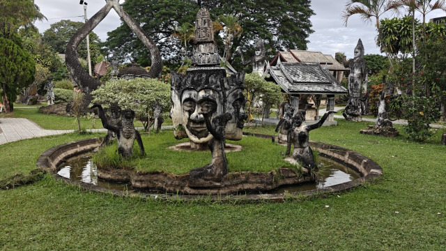 Mais revenons au parc en lui même. Sulilat décida de construire les statues en béton, matériel peu cher et accessible avec bon nombre de cimenteries le long du Mékong. Elles sont pour bon nombre renforcées avec du métal et non peintes. Elles sont considérées comme étant de l’art brut.
