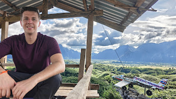 En haut, je fais la connaissance de Thom, un anglais qui vient de finir ses études de médecine en Australie (il y a une passerelle d’équivalence entre les deux pays). On décide, une fois rentrés à Vang Vieng d’aller boire un verre ensemble.