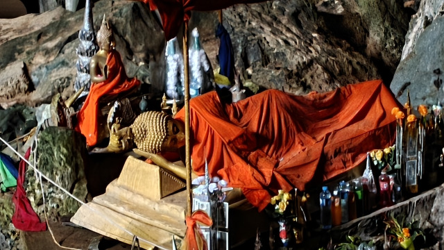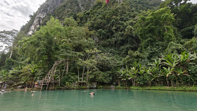 Arrivé au lagon 1, je me décide à aller voir la première grotte de Tham Phu Kham