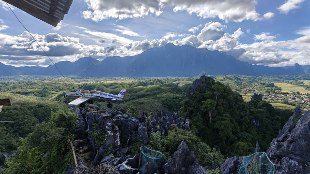 Le Laos, c’est artisanal. C’est même pas très sécurisé. En descendant je dois passer des marches qui font la moitié de ma taille, sans trop de protection. À un moment, je me fais un peu emporter par la descente, je m’arrête brutalement devant a rambarde en bambou.