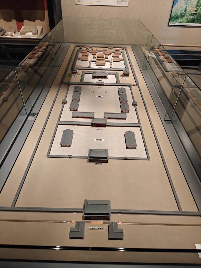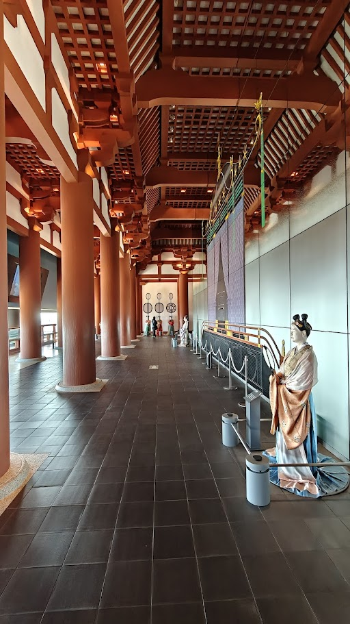 Le 10e étage reconstitue la salle du conseil de ce palais antique avec des piliers vermillon grandeur nature et des mannequins en costumes de cour du VIIe siècle.