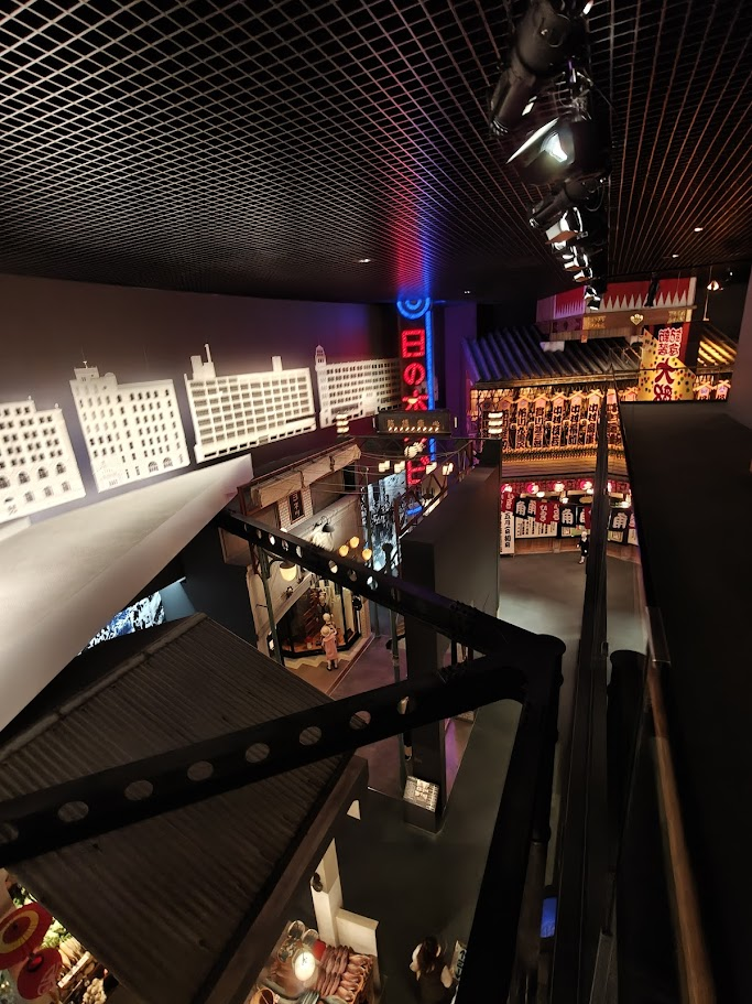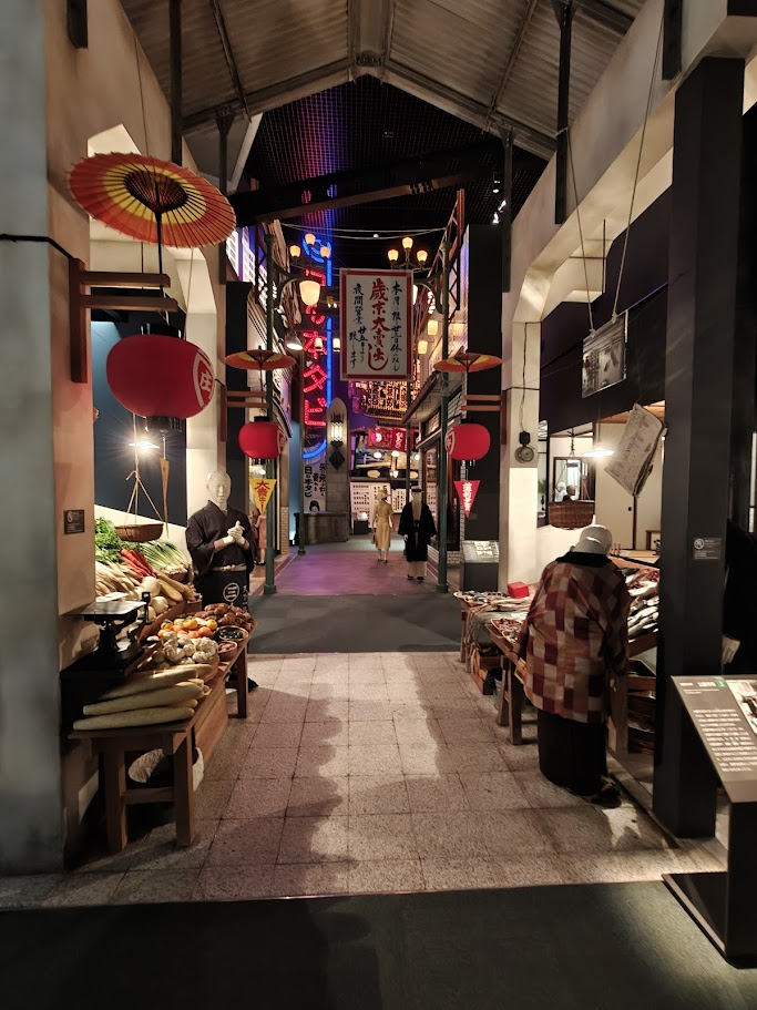 Enfin, le 7e étage présente l’époque moderne, des ères Taisho à Showa, avec des reconstitutions de rues et de boutiques montrant la transformation d’Osaka en métropole industrielle.