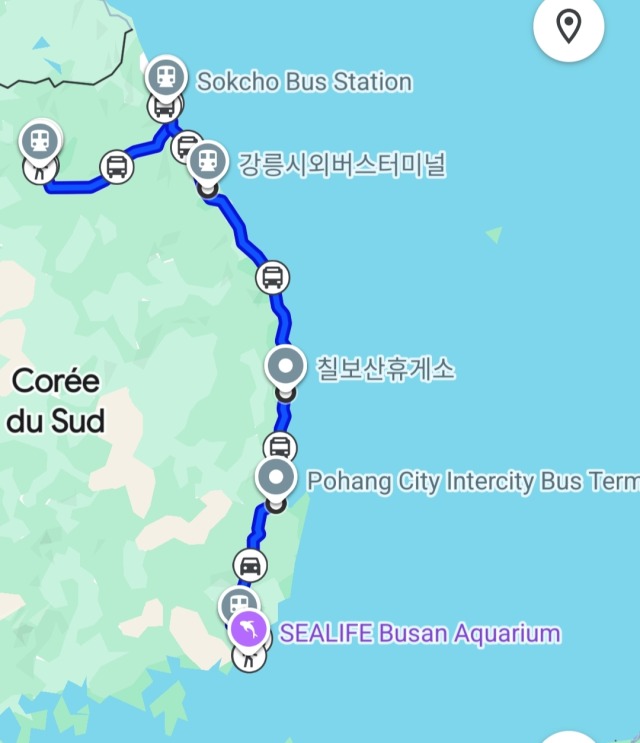 Je retourne à la gare routière par où je suis arrivé le matin même et trouve un bus pour Busan : plus de 5h de route…