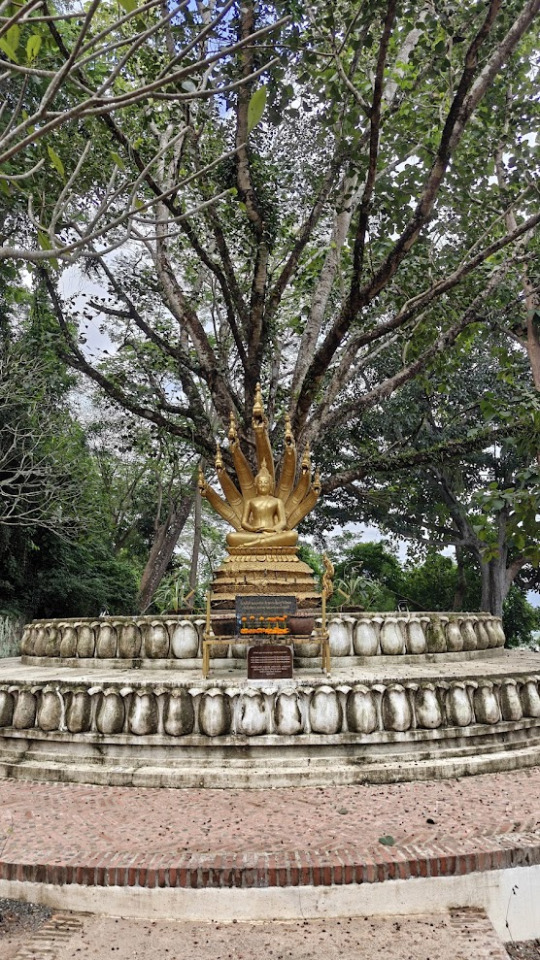 Différents bâtiments dont un théâtre (on y reviendra plus tard) le tout dans un parc arboré avec une immense statue du Roi Sisavang Vong (mort en 1959) de 5 tonnes réalisée par les Russes en 1973 et transportée de Russie jusqu’ici en 1976. (Soit 1 an après l’abdication de son fils Savang Vatthana en 1975 lors de la prise du pouvoir par le parti communiste.)