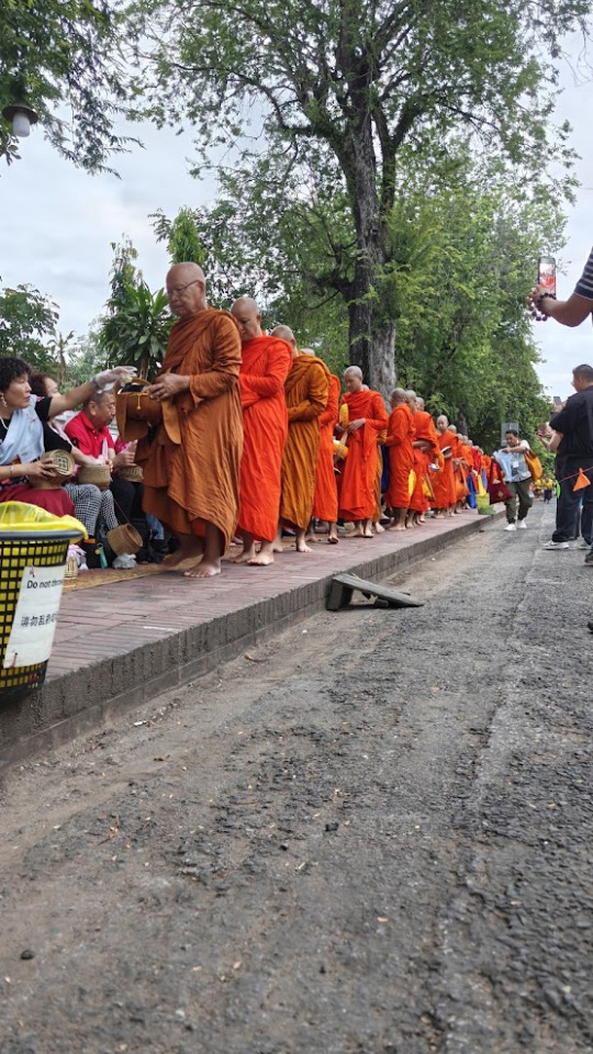 A Louang Prabang, il y a tout les matin une cérémonie qui se déroule dans la vieille ville. Comme celle-ci n’est pas si grande, elle se déroule dans l’avenue principale où tout ce qui a trait à l’histoire, au tourisme et à la restauration.