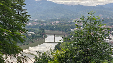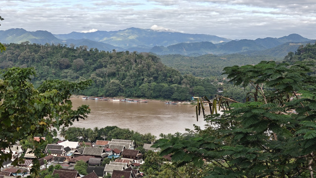 Arrivé en haut (et tout transpirant alors qu’il n’est pas encore 8H00) je peux voir la ville à 360° et un bout du célèbre Mekong.