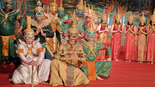 “L’histoire est le Phra Lak Phra Ram où la version Laotienne de l’épopée Indienne du Ramayana. Il raconte l’histoire de Phra Ram (Rama) et de son frère Phra Lak (Lakshmana), de l’enlèvement de Nang Sida (Sita) par le roi démon Hapkhanasouane (Ravana), jusqu’à son sauvetage grâce à l’aide d’Hanouman (Hanuman).