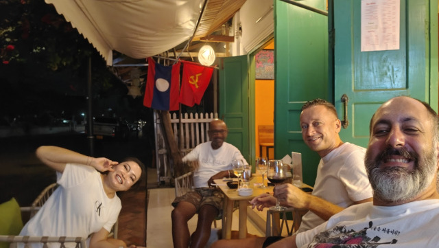 Après avoir mangé un morceau, en rentrant vers ma chambre, je croise un petit bar, Le Cranky T tenu par Lizzy, 50% Laotienne, 50% Américaine et 100% génialement déjantée et son “boyfriend” (en tout cas ça l’était à ce moment là) Floris, un Hollandais vagabond qu’elle héberge dans son b&b. À ce joyeux petit groupe vient s’ajouter un retraité Anglais passioné de musique, un Suisse semi retraité qui organise des voyages pour les gens les plus riches de la planète et d’autres personnes aux parcours de vies incroyables ou improbables. Discuter de tout de rien et se dire que voyager c’est aussi partager.