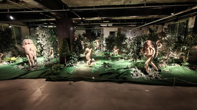 Car en plus des œuvres, comme ici, des vestiges des salles de bain et toilettes ont été gardées. C’est totalement étonnant.