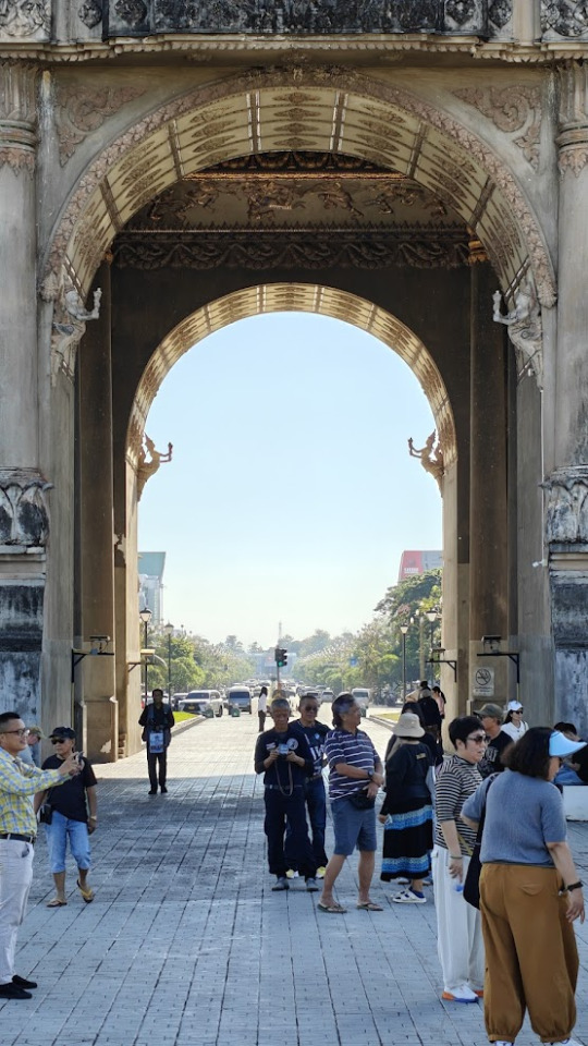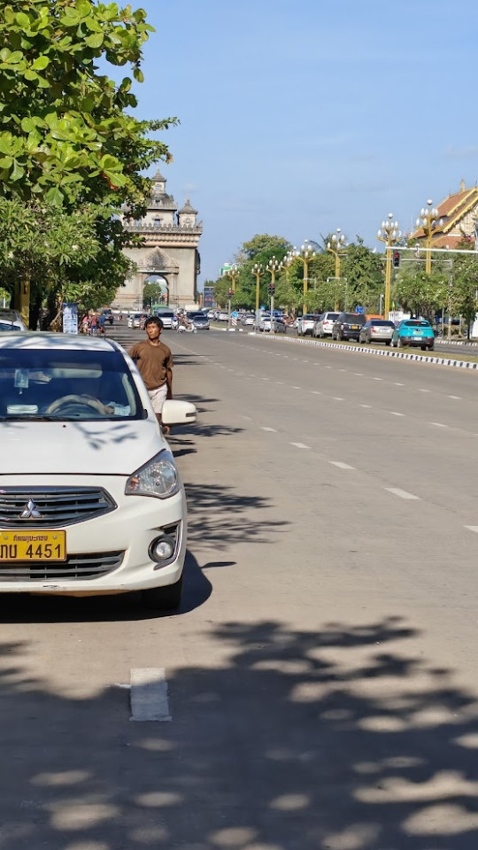 Je me dirige vers l’une des attractions principales de la ville. Il s’agit du Patuxai ou Arc de Triomphe construit entre 1957 et 1969, Patuxai que l’on peut traduire par “Porte de la victoire”. Victoire de l’indépendance contre la France, ce qui est cocasse au regard des similitudes avec l’arc de triomphe Français. Mais comme il est plus haut on peut imaginer que c’est une bravade de la monarchie de l’époque. On ne peut pas dire que ça leur a porté chance d’ailleurs.